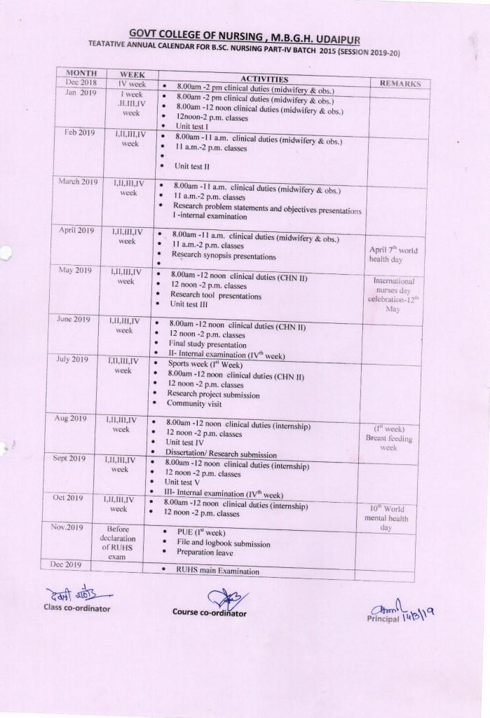 Annual Course Calendar B.Sc. Nursing Part-IV (Batch 2015)